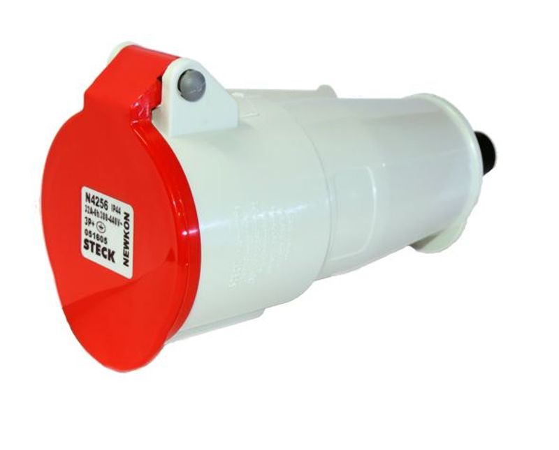 TOMADA INDUSTRIAL NAO METALICA | TIPO: EXTENSAO (MOVEL/ACOPLAMENTO) | MATERIAL: POLIAMIDA | TIPO CONTATOS: FEMEA | NUMERO POLOS: 3 POLOS+TERRA | CORRENTE NOMINAL: 32A | TENSAO NOMINAL: 380-440V | FREQUENCIA: 50/60HZ | COR: VERMELHA | POSICAO PINO TERRA: 6H | BLOQUEIO MECANICO: SEM BLOQUEIO | GRAU PROTECAO: IP-67 | MARCA: STECK | REF: N4256W