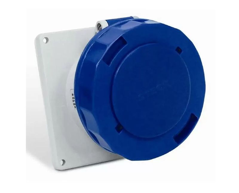 Potência sem Compromissos: Com uma capacidade de 63A e tensão de 220-240V, esta tomada oferece a potência necessária para alimentar equipamentos industriais de alta demanda, mantendo a estabilidade da energia.