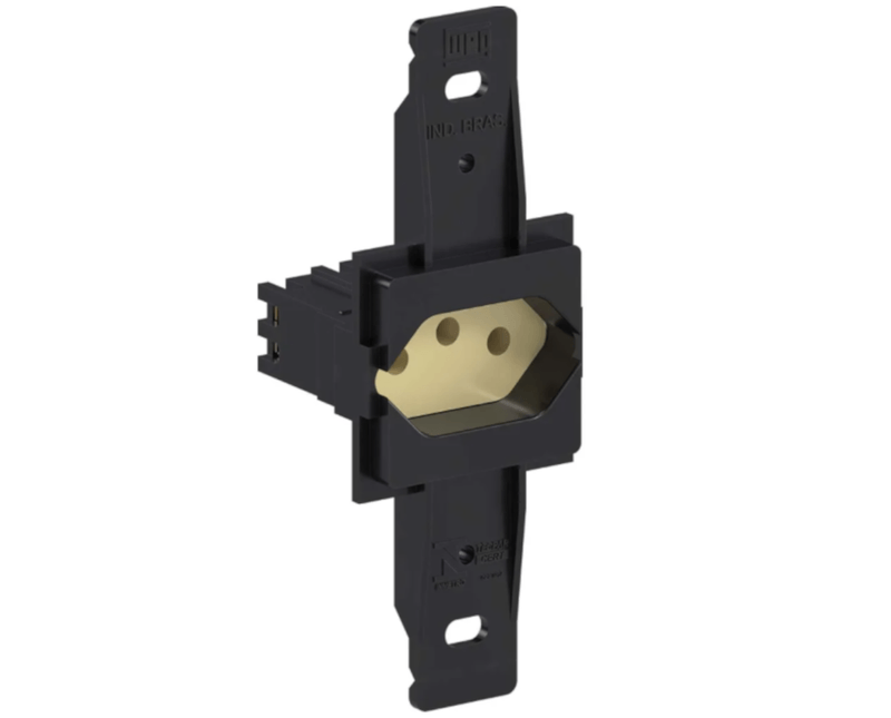 A tomada 2P+T 20A 250V tem a vantagem de ser uma opção sem placa, possibilitando que o usuário escolha a melhor disposição da tomada em seu projeto, dando maior flexibilidade à instalação.