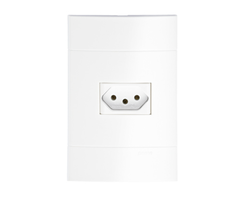 A tomada é acompanhada de uma placa branca de 4X2 polegadas, que serve como suporte para fixação da tomada na parede ou em caixas de passagem elétrica. A cor branca da placa e da tomada proporcionam uma aparência limpa e discreta, combinando facilmente com a decoração de diversos ambientes.
