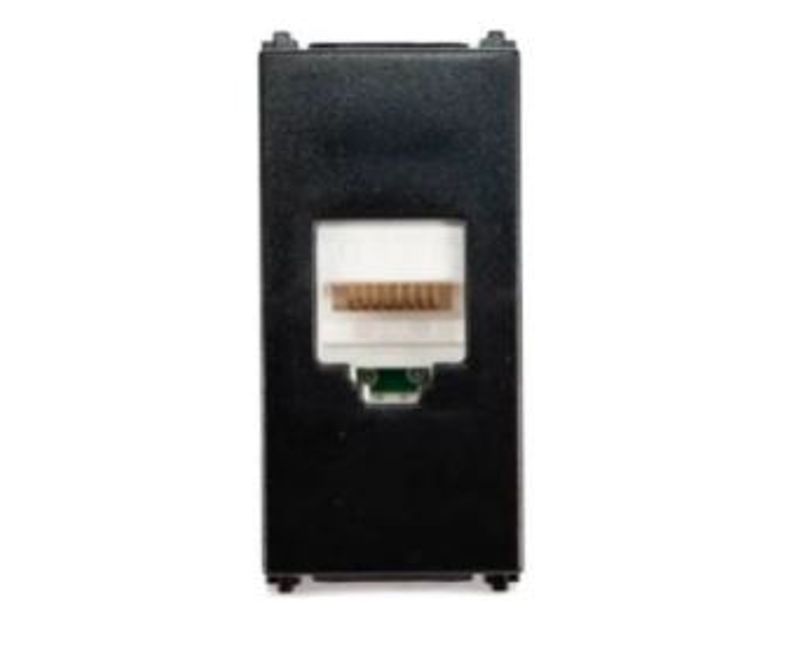 A tomada RJ45 apresenta cor preta, sendo discreta em sua parede e combinando com diversos estilos de decoração.